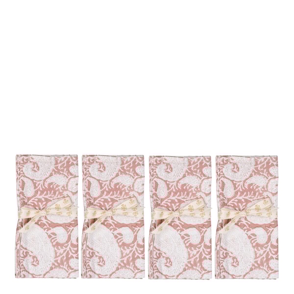 Big Paisley servetter i bomull från Chamois. Perfekta till sommarens dukning, som inslagning till en present, eller till vinterhalvårets mysiga middagar inomhus. Big Paisley är Chamois signaturmönster, och det är handtryckt med den indiska tekniken blockprint. Det är en traditionellmetod där varje del av mönstret trycks för hand av skickliga hantverkare. Det ger servetterna en livfull känsla.