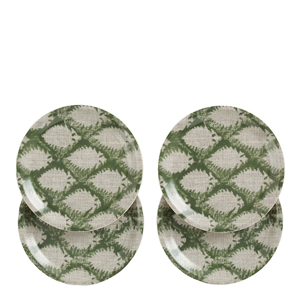Cypress glasunderlägg 11 cm 4-pack grön från Chamois. Ett set med fyra glasunderlägg med dekorativt grönt mönster. Underläggen har flera användningsområden och kan blant annat användas som et litet fat til små saker som smycken eller kryddor. Chamois samarbetar med småskaliga och familjeägda fabriker i Indien, ett klockrent val för den som vill ha både stil och kvalité. De erbjuder utöver dukar, även kökshanddukar och servetter. Bara att mixa och matcha för att skapa en personlig dukning, både inomhus och utomhus.