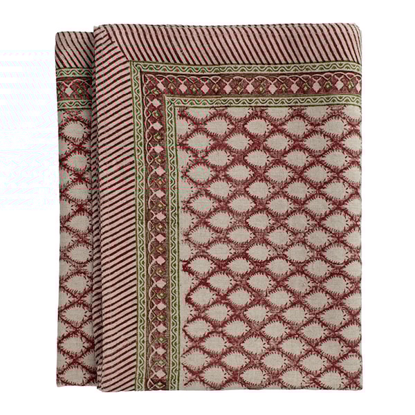 Cypress linneduk 170x270 cm från Chamois är ett fantastiskt val för den stilmedvetne. Tillverkad av 100 % högkvalitativt linne, pryds duken av ett vackert mönster som är handtryckt med traditionell indisk blocktryckteknik. Detta ger en livfull och dekorativ känsla som lyfter din dukning.