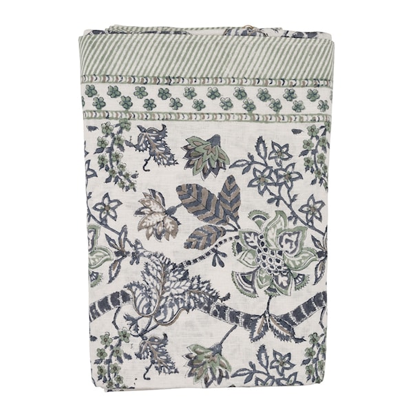 Floral linneduk 150x350 cm från Chamois är en vacker duk i linne med ett blommigt mönster i flera färger. Mönstret är handtryckt med traditionell indisk blockprintteknik, vilket gör varje duk till ett unikt hantverk med ett levande och dekorativt uttryck. Perfekt för att ge ditt bord en färgglad och charmig stil.