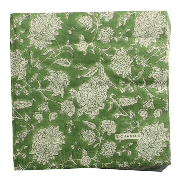 Chamois Indian Rose servett 40x40 cm 50-pack i grönt kombinerar funktion med elegans. Med sitt dekorativa mönster och klassiska format passar de lika bra till vardagsdukningen som till större middagar och tillställningar.