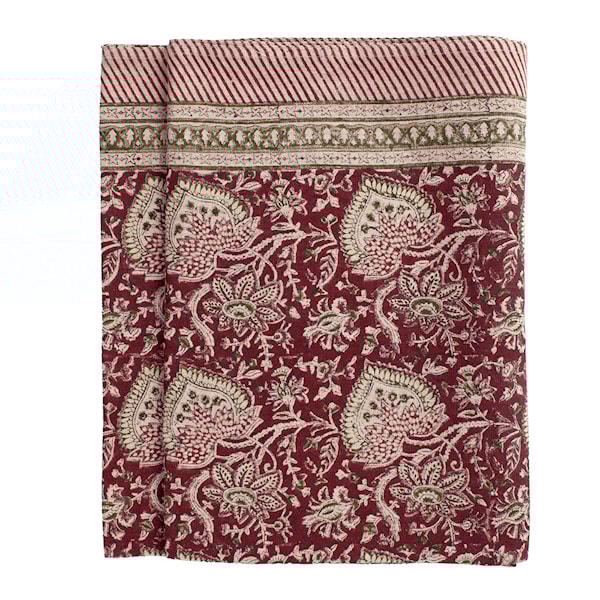 Oriental linneduk 170x270 cm i rött från Chamois är det perfekta valet för en stilren och inbjudande dukning. Den vackra mönstrade duken är tillverkad av 100 % högkvalitativt linne och har ett mönster som handtrycks med traditionell indisk blocktryckteknik. Detta unika hantverk ger duken ett livfullt och dekorativt uttryck som verkligen fångar blicken.