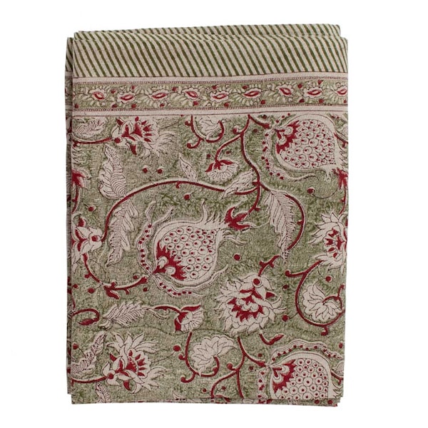 Pomegranate linneduk 150x350 cm från Chamois är en lyxig duk i 100 % linne, perfekt för den som vill ha det lilla extra. Med sitt livfulla mönster, handtryckt med traditionell indisk blocktryckteknik, blir varje duk ett unikt konstverk.