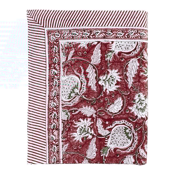 Pomegranate duk 170x270 cm från Chamois. Denna mönstrade bomullsduk är handtryckt med traditionell indisk blocktryckteknik, vilket ger ett levande och unikt utseende.