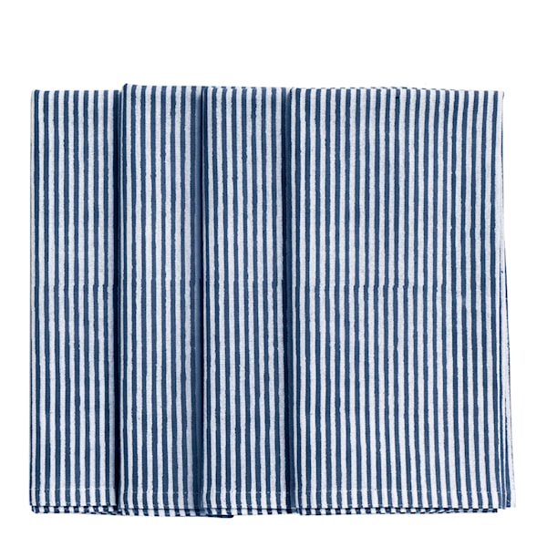 Stripe servett 50x50 cm 4-pack från Chamois erbjuder fyra klassiska servetter med ett tidlöst randigt mönster. Varje servett är noggrant handtryckt med traditionell indisk blockprintteknik, vilket ger tyget en levande och dekorativ karaktär. Detta unika hantverk lägger till en touch av stil och elegans till din dukning, perfekt för att förhöja din bordsservering med en klassisk touch.