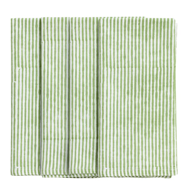 Stripe servett 50x50 cm 4-pack från Chamois erbjuder fyra klassiska servetter med ett tidlöst randigt mönster. Varje servett är noggrant handtryckt med traditionell indisk blockprintteknik, vilket ger tyget en levande och dekorativ karaktär. Detta unika hantverk lägger till en touch av stil och elegans till din dukning, perfekt för att förhöja din bordsservering med en klassisk touch.