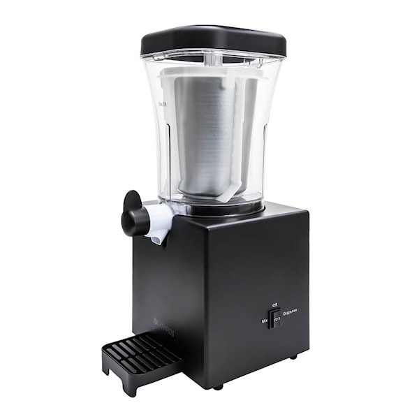 Maskinen fungerar med allt från läsk och saft till färdig slushmix. Dubbla blandare rör innehållet jämnt, och aluminiumtanken ger snabb och effektiv kylning. En kran för smidig servering och ett utdragbart dropptråg håller det rent och enkelt. Efter användning plockar du lätt isär delarna för rengöring.