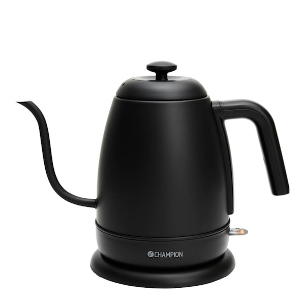 Champion VK700 Elegant är en kompakt och stilren vattenkokare i matt svart rostfritt stål – perfekt för dig som vill ha exakt kontroll över vattenflödet. Den smala svanehalstuten gör den särskilt lämpad för pour-over-kaffe och finare tebryggning.
