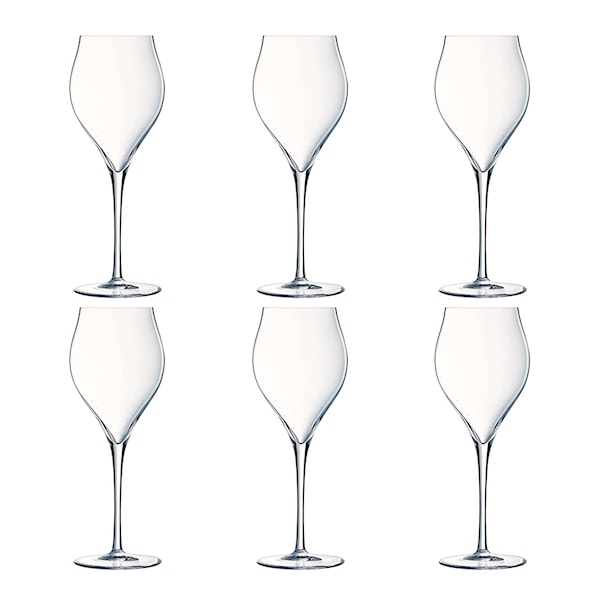 Chef & Sommeliers Exaltation Champagneglas i 30 cl 6-pack är en del av deras Exaltation-serie och erbjuder en tidlös design med extra starkt kristallglas. Den harmoniska designen av Exaltation kombinerar elegans med en dos djärvhet, vilket gör den till ett glas som tilltalar de flesta. Detta 6-pack champagneglas har en generös skål, en förlängd stam för en elegant effekt och en bred fot som ger ett premiumutseende till ett fördelaktigt pris.