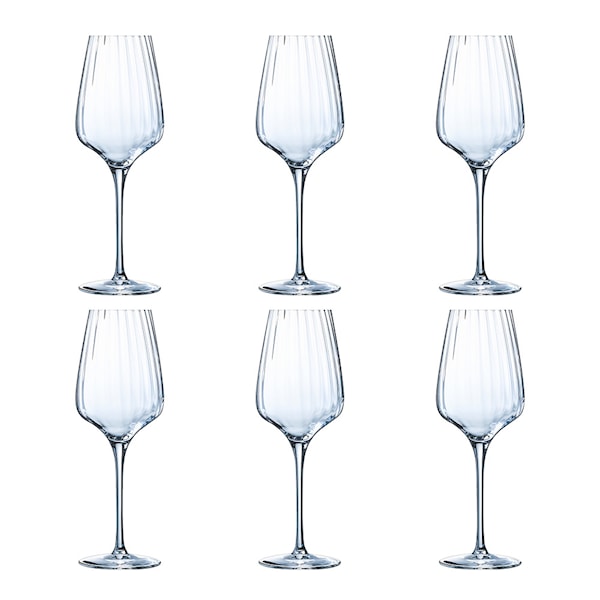 Symetrie Vinglas 35 cl 6-pack är en del av den exklusiva Symetrie-serien från Chef & Sommelier. Dessa vinglas har en snygg och tidlös design som passar perfekt för restaurangägare, mixologer och cateringföretag som strävar efter det lilla extra. Med vertikala linjer som skapar ett hypnotiskt optiskt spel ger dessa glas en elegant touch till din servering.