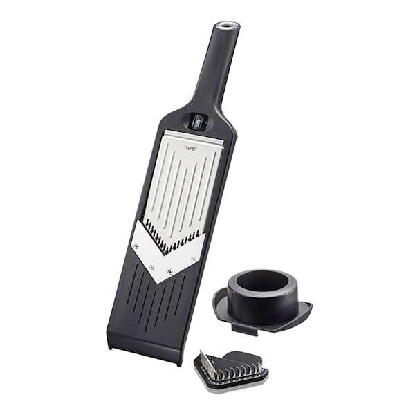 Mandolinjärnet Violi 2.0 med medföljande fingerskydd från den tyska kökstillbehörstillverkaren Gefu.