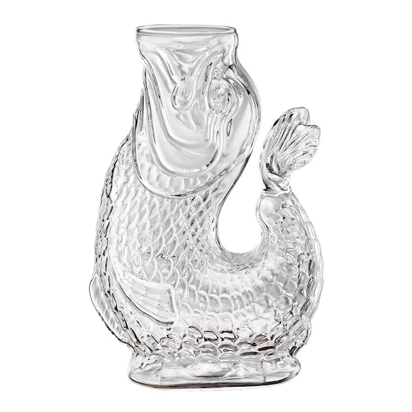 Cilio Nemo vattenkaraff 1 L är en handgjord karaff i borosilikatglas med ett unikt, skulpturalt grepp. Den breda öppningen gör den enkel att fylla med frukt eller isbitar, medan den speciella designen skapar ett gluckande ljud vid servering – en charmig och oväntad detalj.