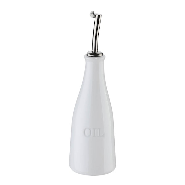 Cilio oljeflaska 23,5 cm vit kombinerar praktisk precision med stilren design. Den glaserade porslinsflaskan har en integrerad hällpip i rostfritt stål och silikontätning, samt luftåterföring som ger droppfri och kontrollerad servering.