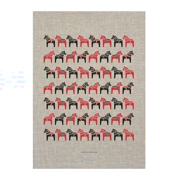 Citronelles Dala kökshandduk 50x70 cm i 100% linne ger köket en tidlös känsla. Med sitt distinkta motiv av vackra dalahästar tillför den svensk tradition med en lyxig och hållbar kvalitet. Linnematerialet är naturligt absorberande och slitstarkt, vilket gör handduken perfekt för daglig användning och en uppskattad detalj i köket. Kökshandduken är också en perfekt gåva för dem med smak för nordisk estetik – stilren, funktionell och elegant.