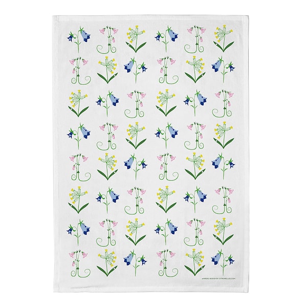 Här har du en kökshandduk med skandinaviska klassiska blommor från Flowers of Scandinavia-serien! Denna 50x70 cm stora handduk är tillverkad av bomull och designad av Anneko Design för varumärket Citronelles. Den färgglada och livliga mixen av blommor ger en rofylld och harmonisk känsla till ditt kök. Perfekt att ha till hands när du behöver torka av händerna eller torka av disk. Handduken kan enkelt maskintvättas på 40 grader för enkel rengöring. Pigga upp ditt kök med denna vackra kökshandduk!