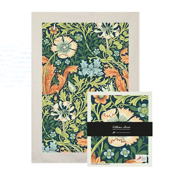 Handduken är gjord i en linne- och bomullsblandning som kombinerar slitstarkhet med hög absorberingsförmåga. Med sitt William Morris-motiv blir den ett härligt inslag på kroken eller över axeln under matlagningen.