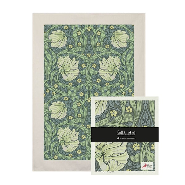 Handduken är gjord i en linne- och bomullsblandning som kombinerar slitstarkhet med hög absorberingsförmåga. Med sitt William Morris-motiv blir den ett härligt inslag på kroken eller över axeln under matlagningen.
