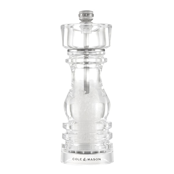 London Saltkvarn 18 cm, från Cole & Manson är en elegant tillägg till ditt kök. Enkel malningsjustering från fin till grov görs genom att vrida på knappen på kvarnens topp. Tillverkad av högkvalitativt bokträ och levereras utan kryddor.