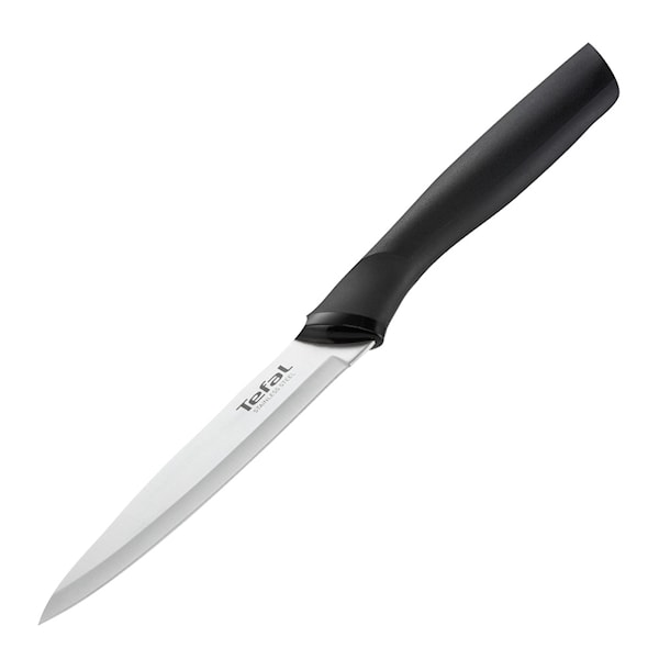 Tefal Comfort grönsakskniv 12 cm från Tefal är perfekt för att hacka och skära alla typer av frukt och grönsaker. Med Tefal Comfort-knivarna får du ett komplett sortiment av knivar och tillbehör i rostfritt stål, med ett ergonomiskt soft-touch handtag för optimal komfort och kontroll. Det högkvalitativa rostfria stålbladet ger dig hög skäreffekt och motståndskraft, och det medföljande bladskyddet säkerställer enkel och säker förvaring av kniven. Tefal Comfort-kniven kommer att bli en av dina viktigaste hjälpredor i köket.