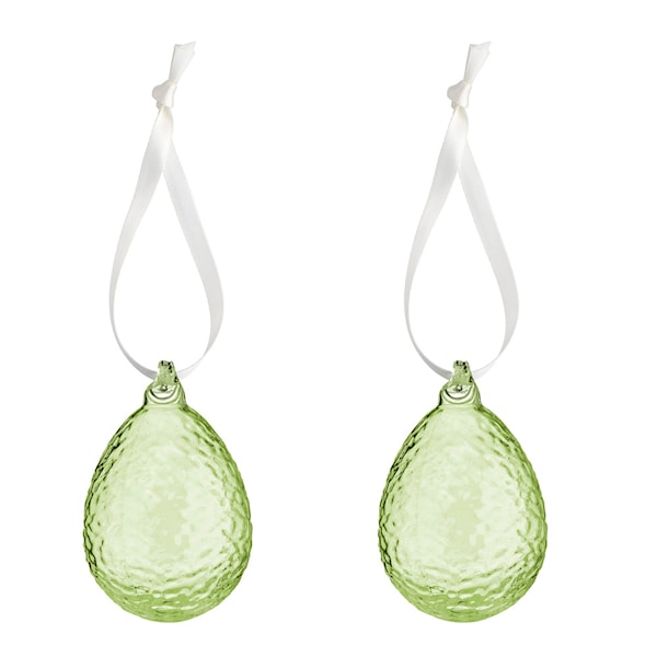 Gry hängande påskägg, 2-pack från Cooee, är ett elegant och modernt tillskott till påskdekorationerna. Dessa dekorativa ägg är tillverkade i glas och har en taktil och sofistikerad yta som ger en stilren och förfinad påskkänsla. De hänger vackert från ett sidenband i en mjuk beige nyans, vilket gör dem enkla att placera på grenar, i fönstret eller som en del av en större dekoration.