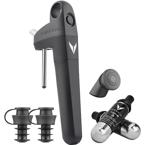 Pivot+ Vinkonserveringssystem från Coravin kombinerar konservering med luftning, vilket ger ett mer aromatiskt och smakrikt vin när du häller upp med den medföljande Pivot Aerator-tillbehöret.
