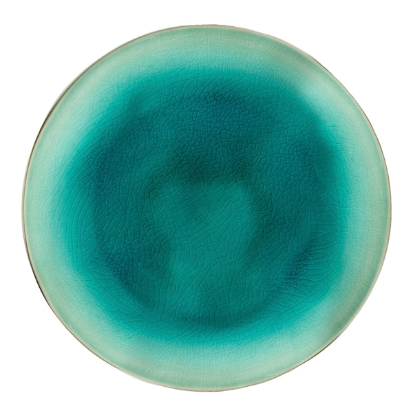 Färgkombinationen av azurblått och svart ger tallriken ett sofistikerat uttryck som är både modernt och klassiskt. Med en diameter på 21 cm är den perfekt för smårätter, desserter eller som en del av en vacker dukning.