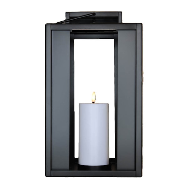 Den här lyktan från Cozzy mäter 20x25 cm och levereras med ett LED-blockljus. Den är tillverkad i svart metall och har en tidlös design som passar lika bra inomhus som utomhus. Det medföljande ljuset sprider ett varmt och mjukt sken, och lyktan fungerar utmärkt som stämningshöjare på terrassen, vid entrén eller i vardagsrummet.