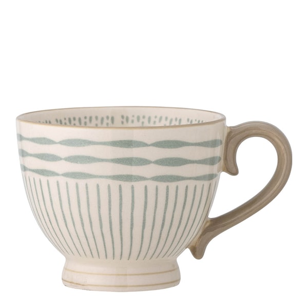 Creative Collection Maple kopp 42 cl är en stor stengodsmugg med ett friskt blått randmönster mot en mjukt grön bas. Designen är både enkel och uttrycksfull – perfekt för dig som uppskattar muggar med lite extra karaktär.
