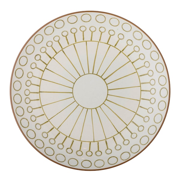 Creative Collection Maple tallrik 25,5 cm är en modern och uttrycksfull tallrik i stengods. Det gula geometriska mönstret mot den gröna bakgrunden skapar en balanserad kontrast – perfekt för dig som vill addera färg och personlighet till din dukning.