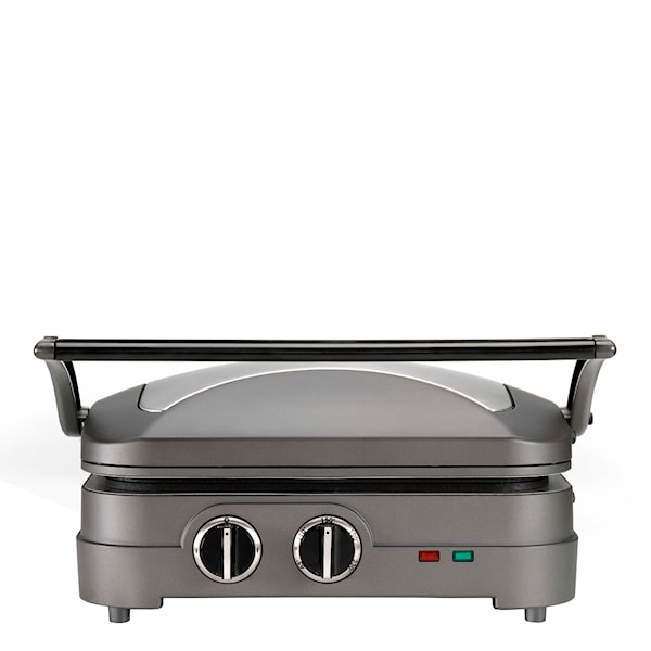 Med bordsgrillen Elite Griddler ur serien Core Collection från Cuisinart kan du grilla kött, grönsaker, fisk, mackor och mycket mer. En smidig och lätthanterlig bordsgrill som ger råvarorna läckra grillränder och krispig yta. Grillens plattor har en non-stick yta vilket gör att du kan minska på matfettet och ändå få en härlig grillad måltid. När bordsgrillen inte används kan den förvaras i köksskåpen utan problem.