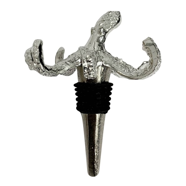 Culinary Concepts Octopus flaskpropp i silverfinish är ett unikt och skulpturalt inslag i hemmet – lika funktionell som dekorativ. Den vackert utformade bläckfisken i metall ger flaskan en maritim elegans, samtidigt som proppen försluter innehållet och bevarar arom och fräschör.