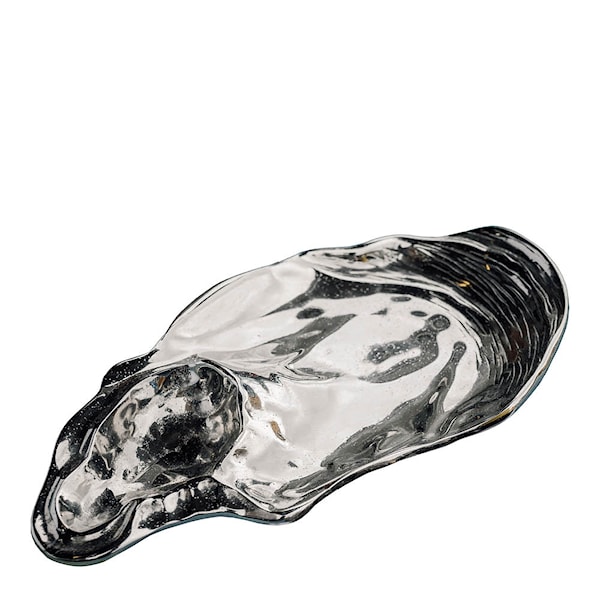 Culinary Concepts Shell serveringsfat 48x26 cm i silver är ett formstarkt serveringsfat som kombinerar klassisk inspiration från havet med modern funktionalitet. Fatet har en snäckformad design med blank yta, där chips eller skaldjur placeras vackert, och en integrerad dipp-skål vid skalets bas.