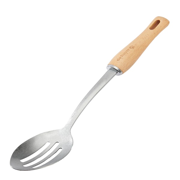 Snygg och praktisk serveringssked från De Buyer som är en del av den eleganta serien B Bois. Skeden är tillverkad i högkvalitativt rostfritt stål och handtaget är tillverkat i bokträ - två mycket hållbara material. Hålet i skeden är perfekt för avrinning då man vill servera mat utan att få med för mycket spad på tallriken.