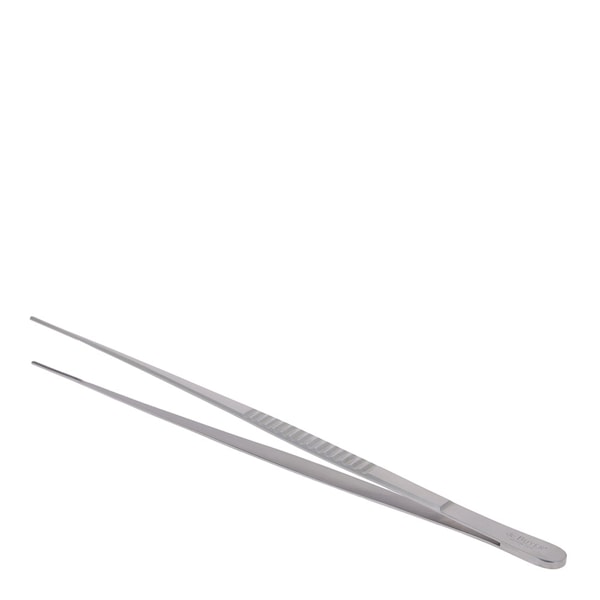 Pincetten är tillverkad av rostfritt stål, har ett greppvänligt handtag, tål maskindisk och de små räfflorna på spetsarna förenklar greppet vid vändning av matvaror.