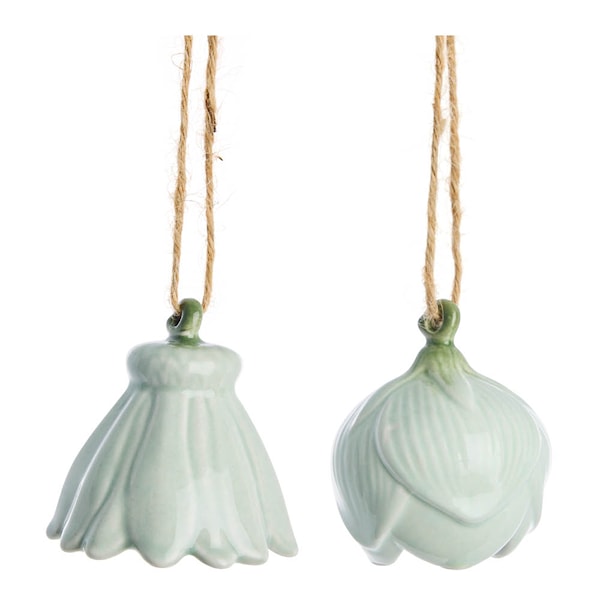 Lene Bjerre Dehlia hängande dekoration blommor 2-pack är en dekorativ detalj som ger hemmet ett lätt och säsongsbetonat uttryck. Varje blomma är tillverkad i keramik, mäter 4,5 cm och har en nedtonad, neutral färg som passar i många olika miljöer.