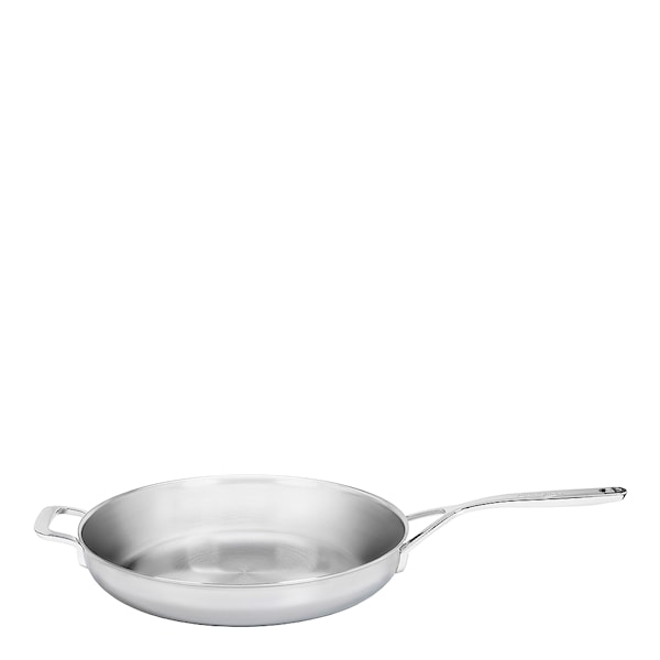 Stekpannan är tillverkad i ett 3 mm tjockt 5-lagers material - kant till kant, vilket ger upp till 50% mer stekyta och ultimat värmefördelning i hela pannan. Stekpannan har en 5-PlyMaterial triplInduc botten som ger extra snabb värmefördelning, den är Silvinoxbehandlad (patenterad och effektiv rengöring av det yttre stålet från slaggprodukter) och de helgjutna blankpolerade ergonomiska handtagen har stay cool effekt.