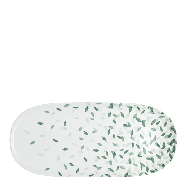Greenhouse serveringsfat 44x20 cm vit/grön , från Denby. En riktig blickfångare i Greenhouse-kollektionen är det stora serveringsfatet, som har karvtexturen och det kaskadliknande lövdesignen på en bit som är utformad för att vara i centrum för uppmärksamheten. En del av Greenhouse Kollektionen och omfattas av Denbys 10-åriga garanti. Styla med Denbys Carve White- eller Green-porslinsserier för att skapa en skräddarsydd kollektion bara för dig. Tål diskmaskin, mikrovågsugn och frys, samt ugnssäker upp till 250°C.