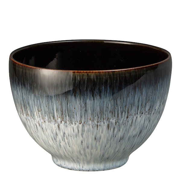 Ge dina hemlagade sopprätter en extra visuellt slående aspekt med denna vackert utformade djupa skål från Denby. Vare sig du känner dig sugen på en riktigt mastig gulaschsoppa eller en matig thailändsk biffnudelsoppa kommer denna skål inte att göra dig besviken med sina höga kanter och sin iögonfallande färgskiftande glasyr som för tankarna till djupa undervattensmiljöer och samtidigt får din valda maträtt att se ännu mer aptitretande ut. Skålen är en del av Denbys Halo-kollektion, och det unika mönstret har omsorgsfullt tagits fram genom en rad processer där flera glasyrer kombineras för att sedan i ugnens hetta gå samman för att skapa ett exceptionellt resultat varje gång. Varje nytt exemplar får på så sätt unika detaljer i sitt mönster med naturliga variationer som sannerligen gör varje produkt i Halo-linjen till ett konstverk i sig. Skålen har en diameter på 14,5 cm och kan diskas i diskmaskin.