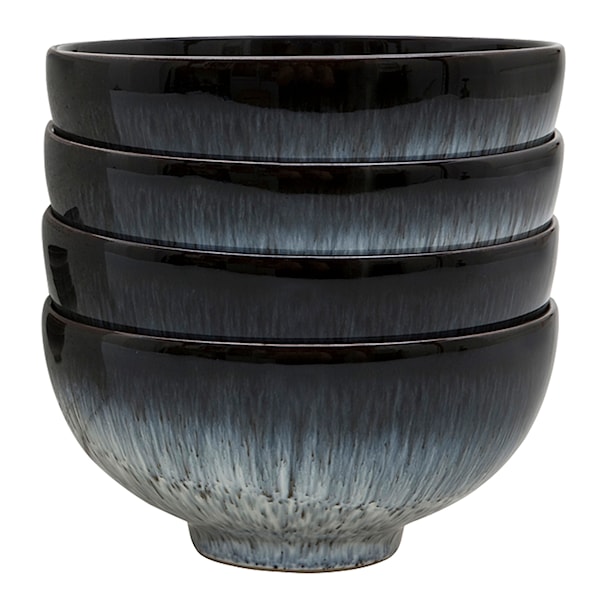 Duka vackert med de handgjorda skålarna Halo från Denby. Skålarna kommer i 4-pack och har en vacker glasyr som innehåller två glasfärger för att ge en slående, lite flammig finish. Skålarna finns i två storlekar som gör det lätt för dig att anpassa din dukning efter tillfälle. Haloserien innehåller även muggar, tallrikar och kaffekannor, alla med samma unika utseende.