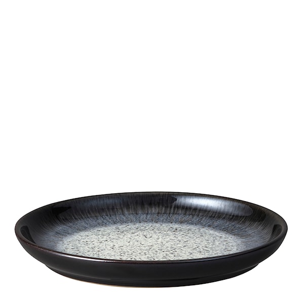 Denna modernt utformade mindre tallrik är perfekt för förrätten, och med sin vackra design kommer den även att förhöja din matupplevelse exponentiellt. Tallrikens upphöjda kanter i kombination med det unika mönstret ger den ett alldeles speciellt djup och de höga kanterna gör tallriken perfekt för avnjutning av såsbaserade maträtter. Tallriken, som är en del av Denbys Halo-kollektion, har ett exklusivt mönster som omsorgsfullt har tagits fram genom en rad processer där flera glasyrer kombineras för att sedan i ugnens hetta gå samman för att skapa ett exceptionellt resultat varje gång. Varje nytt exemplar får på så sätt unika detaljer i sitt mönster med naturliga variationer som sannerligen gör varje produkt i Halo-linjen till ett konstverk i sig. Tallriken har en diameter på 17 cm och kan diskas i diskmaskin.