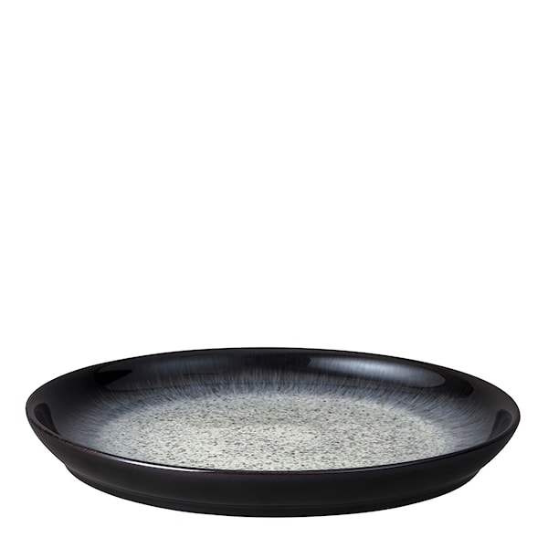 Denna modernt utformade mattallrik är perfekt att ha som middagstallrik under finbjudningarna, och med sin vackra design kan vi lova att den kommer att förhöja både din och dina gästers matupplevelse exponentiellt. Tallrikens upphöjda kanter i kombination med det unika mönstret ger den ett alldeles speciellt djup och de höga kanterna gör tallriken perfekt för avnjutning av såsbaserade maträtter såsom en mastig gryta eller en krämig pasta. Tallriken, som är en del av Denbys Halo-kollektion, har ett exklusivt mönster som omsorgsfullt har tagits fram genom en rad processer där flera glasyrer kombineras för att sedan i ugnens hetta gå samman för att skapa ett exceptionellt resultat varje gång. Varje nytt exemplar får på så sätt unika detaljer i sitt mönster med naturliga variationer som sannerligen gör varje produkt i Halo-linjen till ett konstverk i sig. Tallriken har en diameter på 26 cm och kan diskas i diskmaskin.