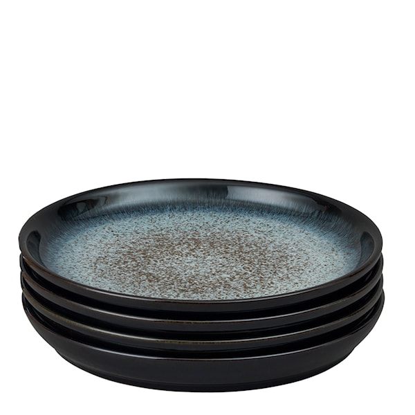 Tallriken Halo från Denby är handgjord med en vacker glasyr som innehåller två glasfärger för att ge en slående, lite flammig finish. Tallrikarna kommer i 4-pack och finns i flera olika storlekar så du kan lätt skapa en effektfull dukning när helst du önskar. Haloserien innehåller även muggar, skålar och kaffekannor, alla med samma unika utseende.