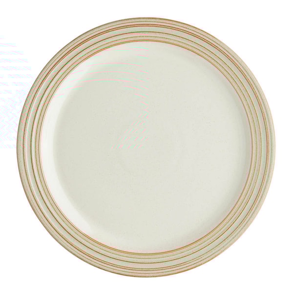 Denby Heritage Orchard middagstallrik på 27,5 cm är både vacker och funktionell. Designen är inspirerad av Derbyshires kullar och dalar, och de harmoniska nyanserna av äppelgrönt och havre ger tallriken en klassisk stil. Den är handgjord i England med högkvalitativ lera som utvunnits lokalt, och glasyrens slitstarka finish skyddar mot skador och slitage.