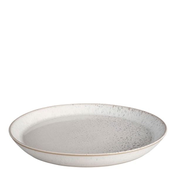 Kiln tallrik 26 cm från Denby är en huvudrättstallrik med tidlös design och ett sinnligt uttryck. Den eleganta coupe-formen med mjukt välvda kanter ramar in maten på ett vackert sätt och skapar en harmonisk dukning. Den varma beigefärgen och den unika stänkmönstrade glaseringen gör varje tallrik unik – ett genuint uttryck för hantverksskicklighet.