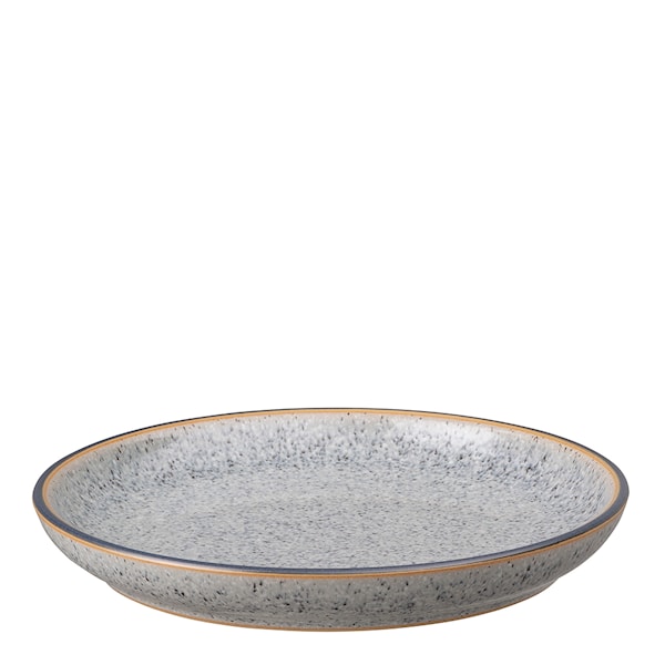 Liten handtillverkad tallrik med upphöjda kanter, ett vackert grått mönster och en diameter på 17 cm från engelska Denbys Studio Grey-kollektion.