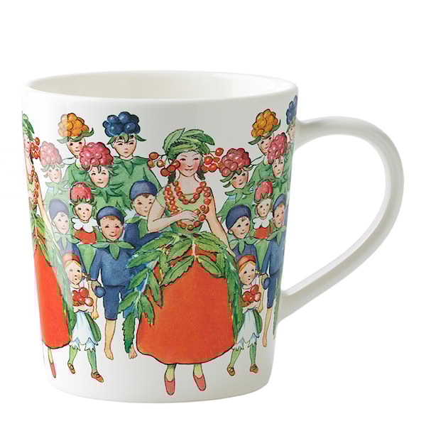 Elsa Beskow August mugg med handtag, 40 cl, är en underbar del av Design House Stockholms serie som hyllar den älskade barnboksförfattaren och illustratören Elsa Beskow. Formgiven av Catharina Kippel, fångar denna mugg Elsa Beskows originalillustrationer på ett fantastiskt sätt. Tillverkad i New Bone China-porslin har muggen en volym på 40 cl och är både diskmaskinssäker och mikrovågsugnssäker, vilket kombinerar praktisk användning med stilren design. En perfekt fusion av konst och funktionalitet för att njuta av din favoritdryck i vardagen eller vid festliga tillfällen.
