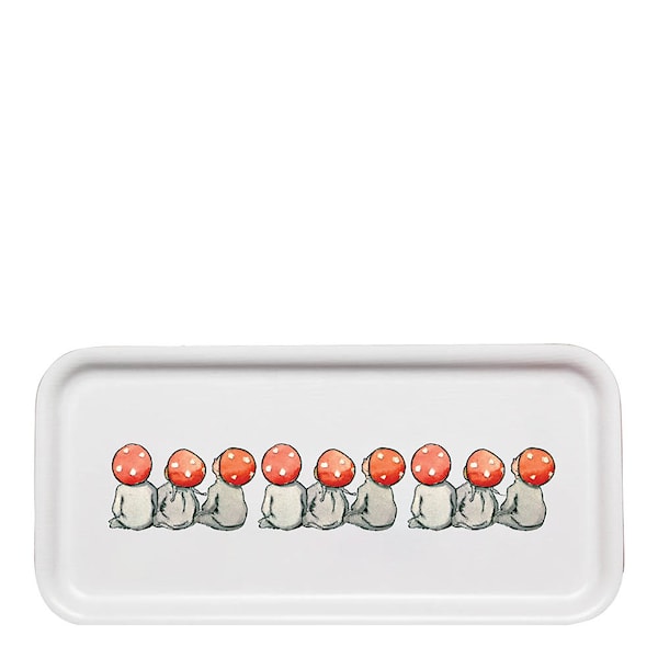Elsa Beskow bricka 27,5 x 13,5 cm från Design House Stockholm är ett perfekt serveringsfat som lämpar sig för frukost, smårätter eller snacks. Mönstret, designat av Catharina Kippel och baserat på Elsa Beskows välkända illustrationer, ger brickan en nostalgisk känsla samtidigt som den tillför elegans till varje måltid.