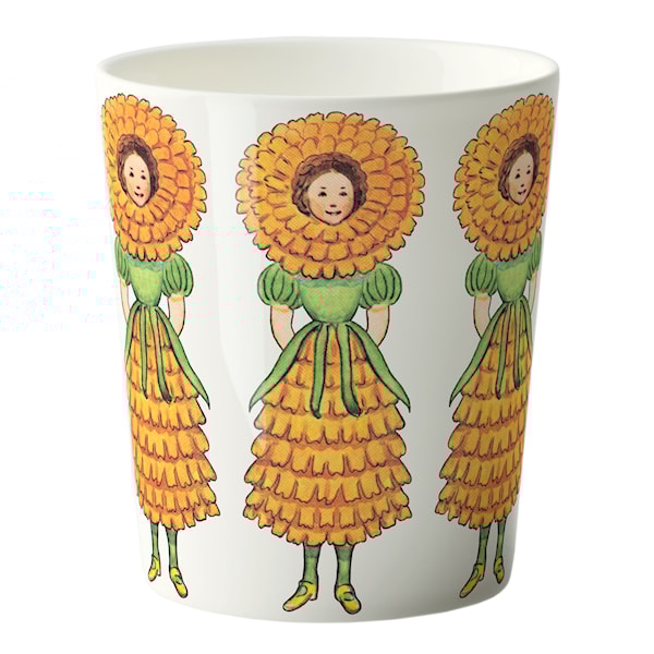 Mugg ur Elsa Beskow-kollektionen från Design House Stockholm. Mönstret med Fru Ringblomma klär runt hela koppen och livar upp den mest vardagliga fikastund. Volym 28 cl.