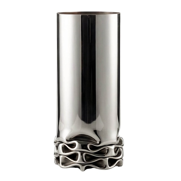 Design House Stockholm Hydraulic vas XL 32 cm stål är framtagen av Isa Andersson och bygger på kontrasten mellan hårt material och mjuk form. Den är lika mycket ett konstverk som ett funktionellt bruksföremål.