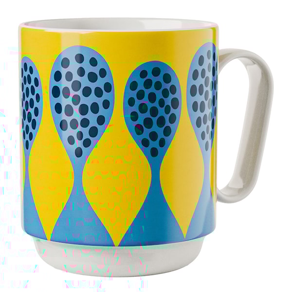 Muggen tål både mikrovågsugn och diskmaskin, vilket gör den till ett praktiskt val för daglig användning samtidigt som den tillför en konstnärlig detalj till fikastunden.